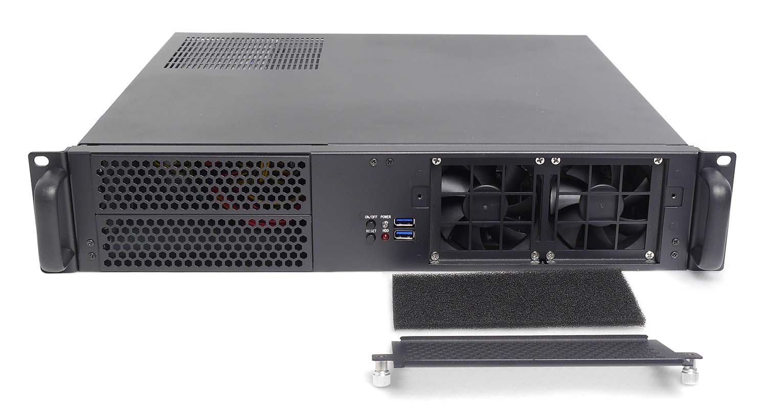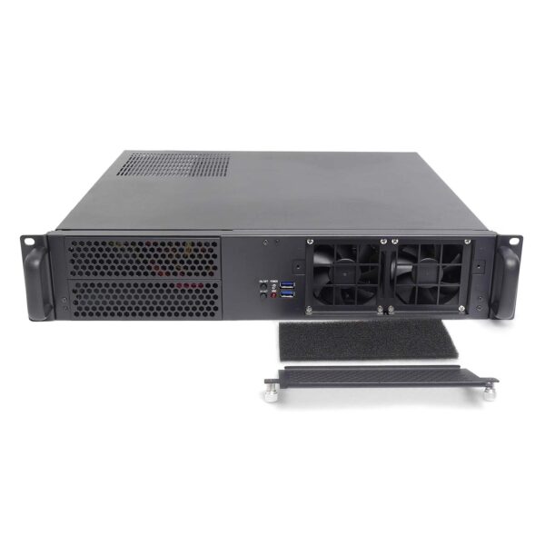 2 вентилятора 80x80x25 мм, защищенные легко съемным, моющимся пылезащитным фильтром.