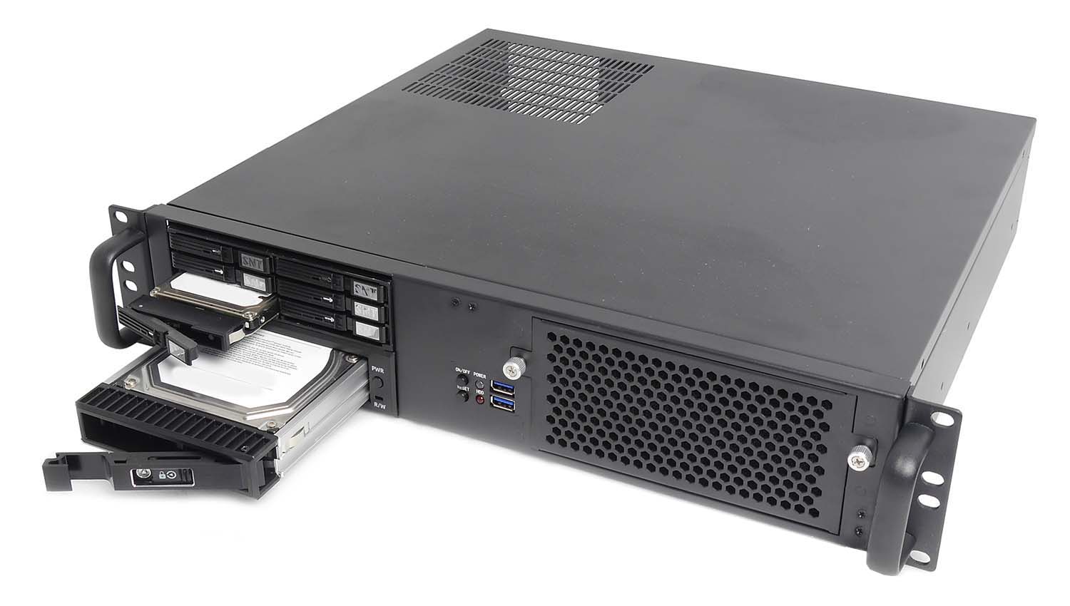 Два вентилятора по 80 мм на передней панели, направленных на корзины с накопителями, в комплексе с вентилятором блока питания обеспечивают стабильное охлаждение всех элементов системы.